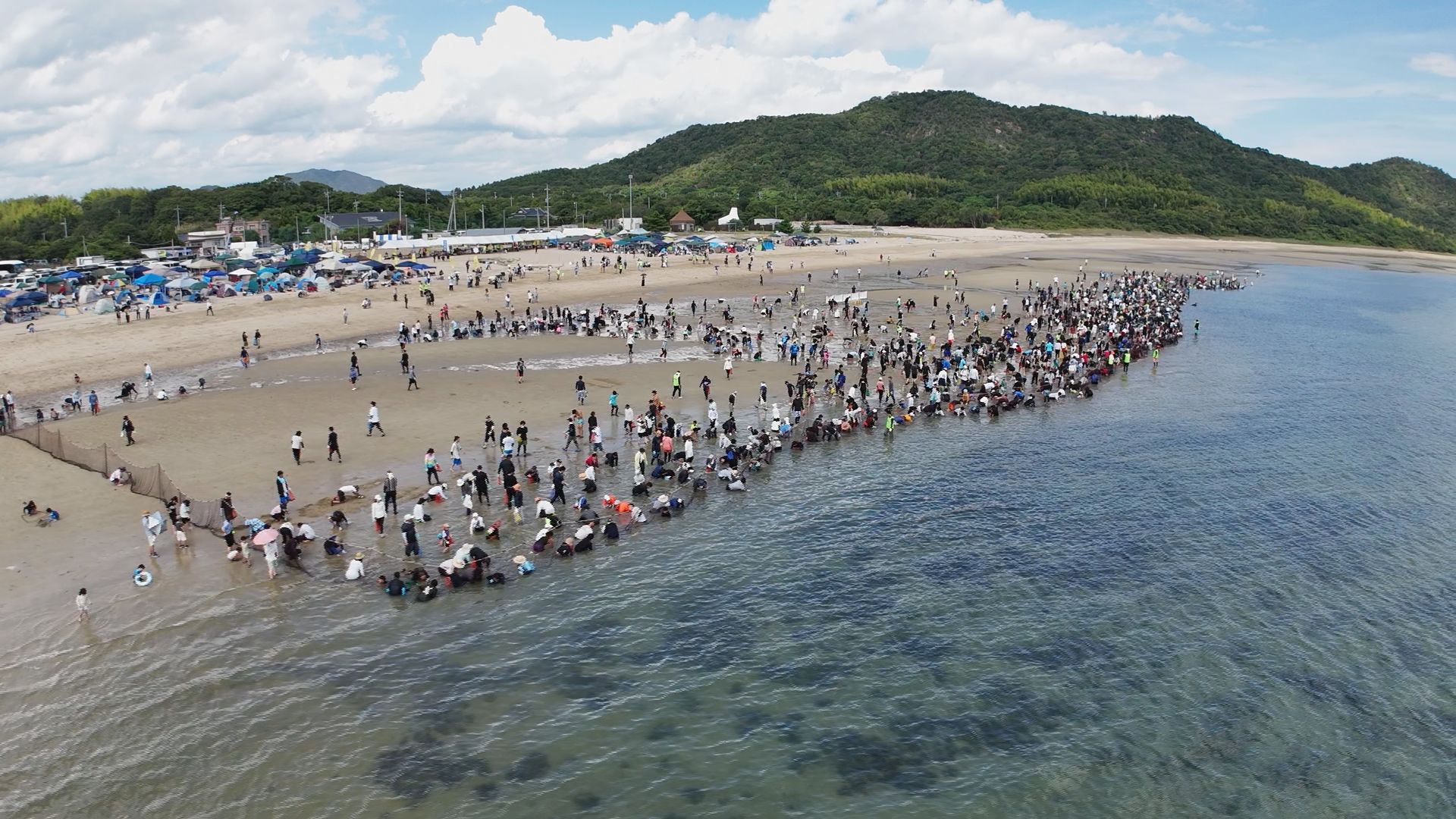 えび狩り選手権の見どころのひとつ、1200人が一斉に猛ダッシュでのスタートは圧巻です。
