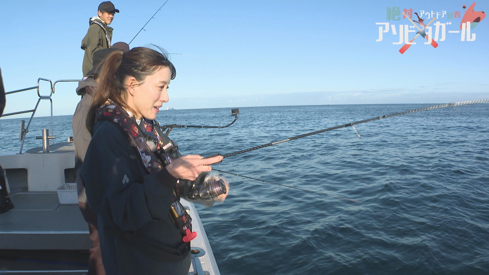 他のアングラーが次々とアオリイカを釣りあげる中、6時間釣ることができない大田理裟さん。イカのアタリはあるもののなかなかヒットしません。エルレの宮前船長も釣り方をレクチャーします。