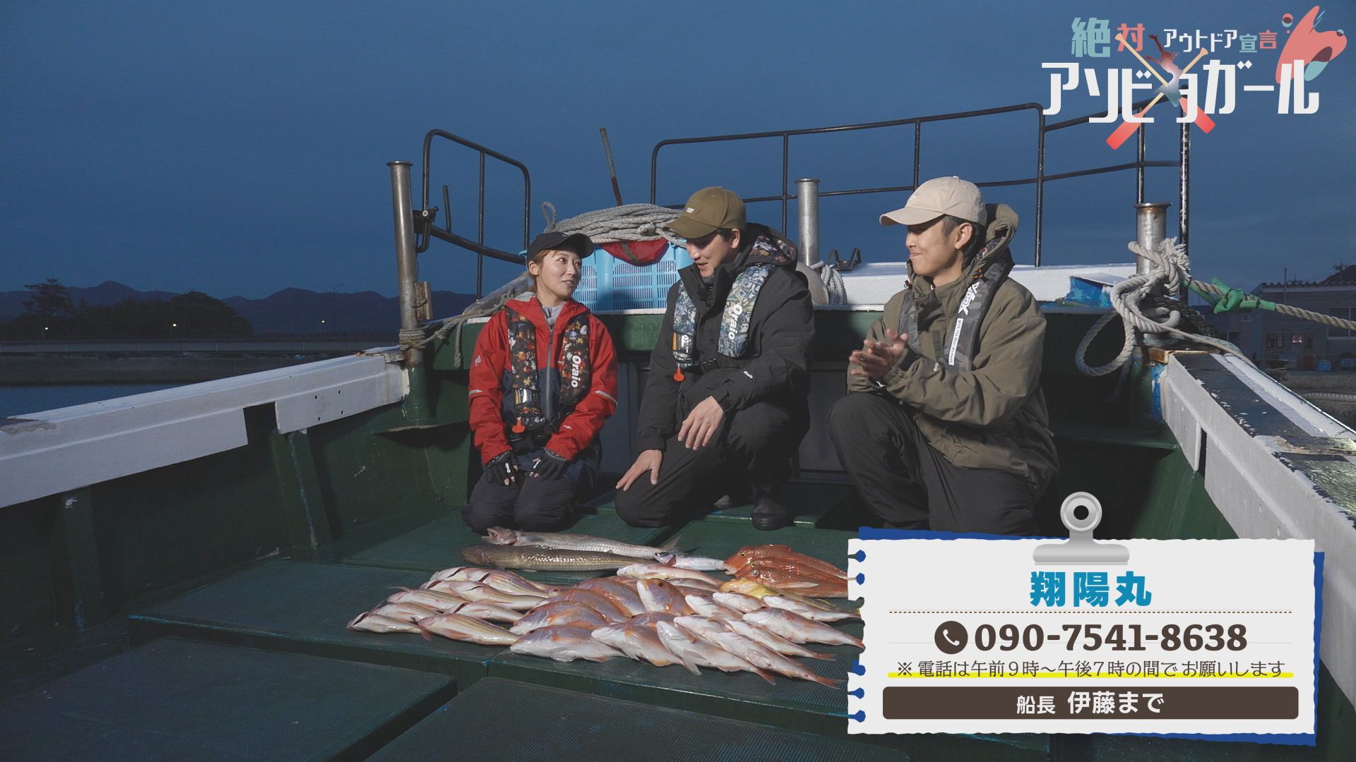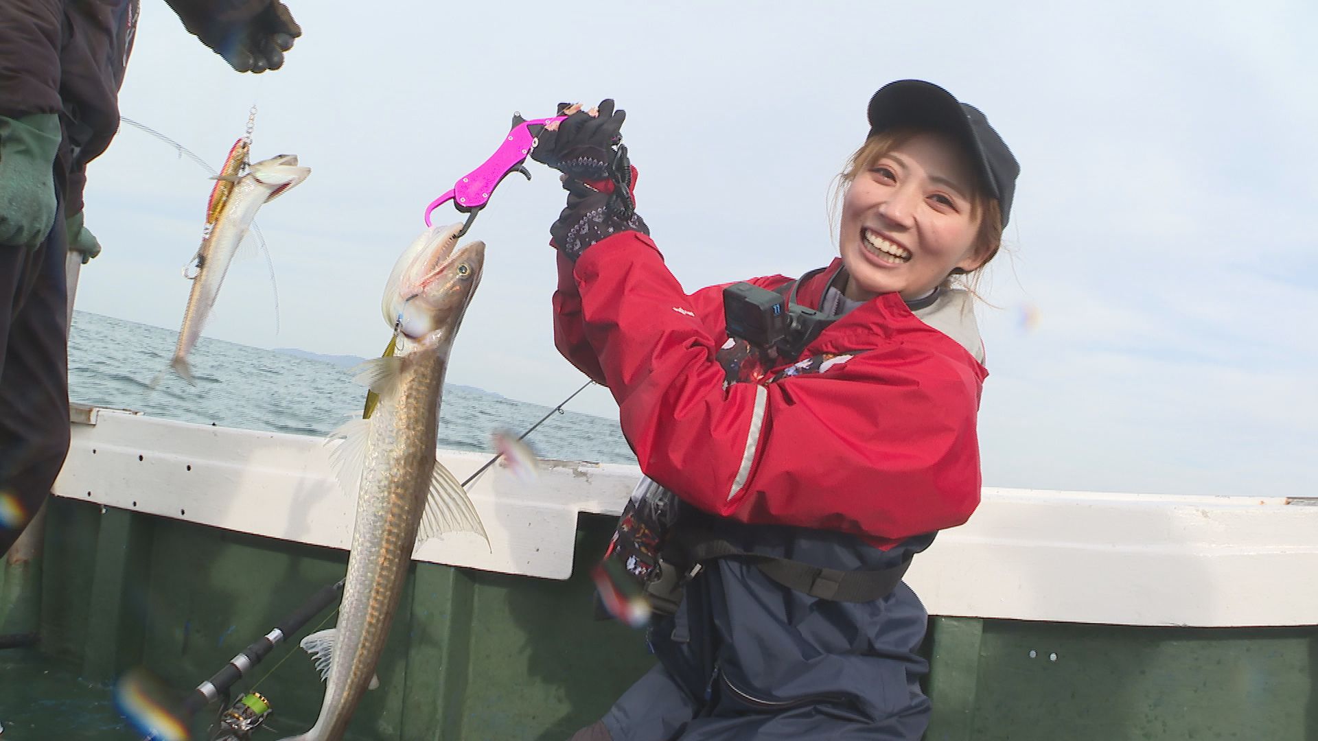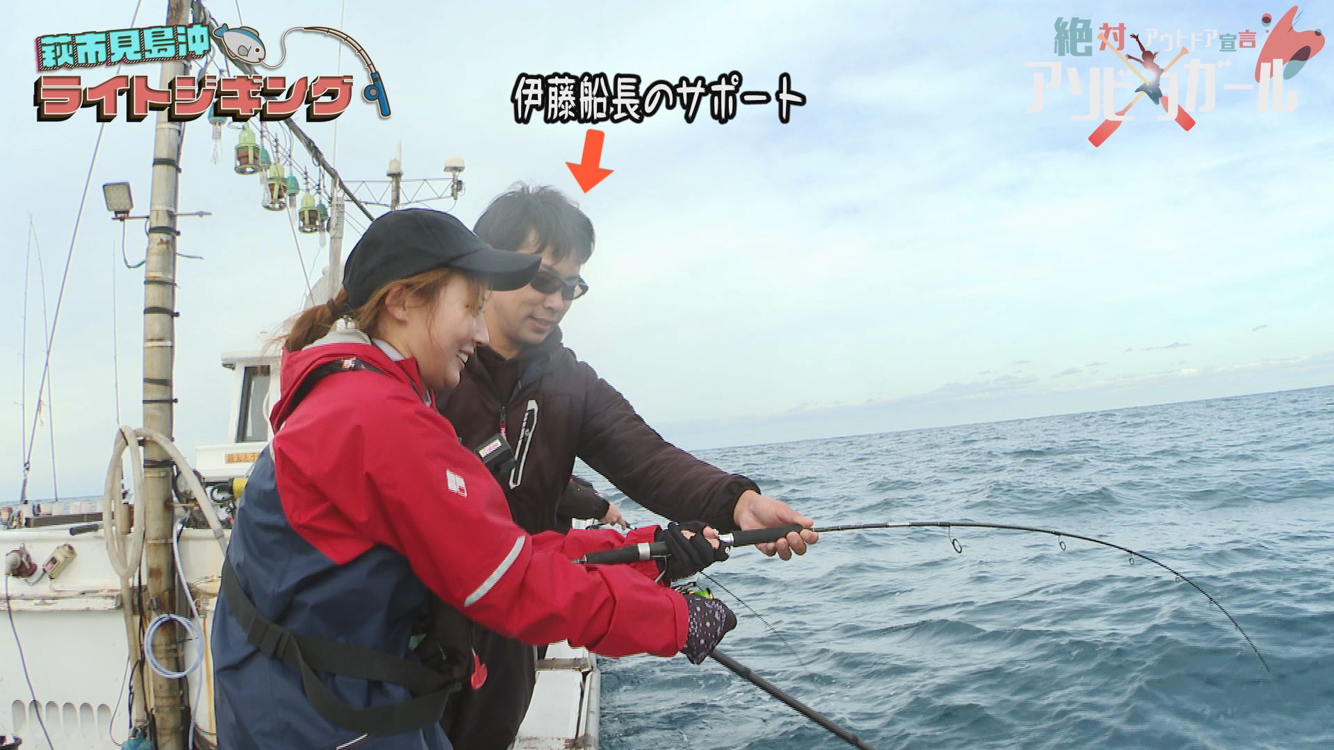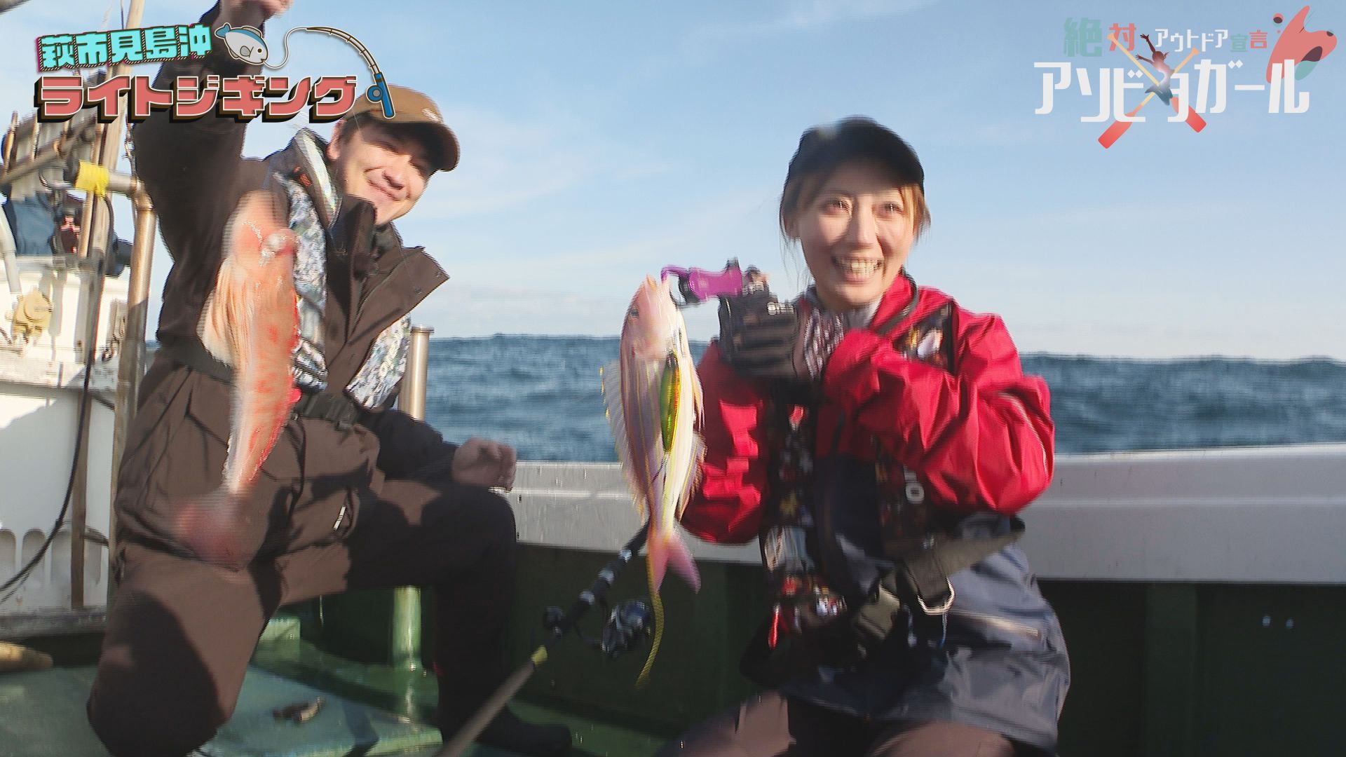 アソビタガール2号の兼頭のぞみが初めての船で海釣りに挑戦します。釣りの先生は釣具のポイント山口小郡店の近藤店長です。今回はライトジギングで水深100mの海底にいるマダイや根魚、高級魚のアマダイを100~120gのメタルジグを使って釣ります。
