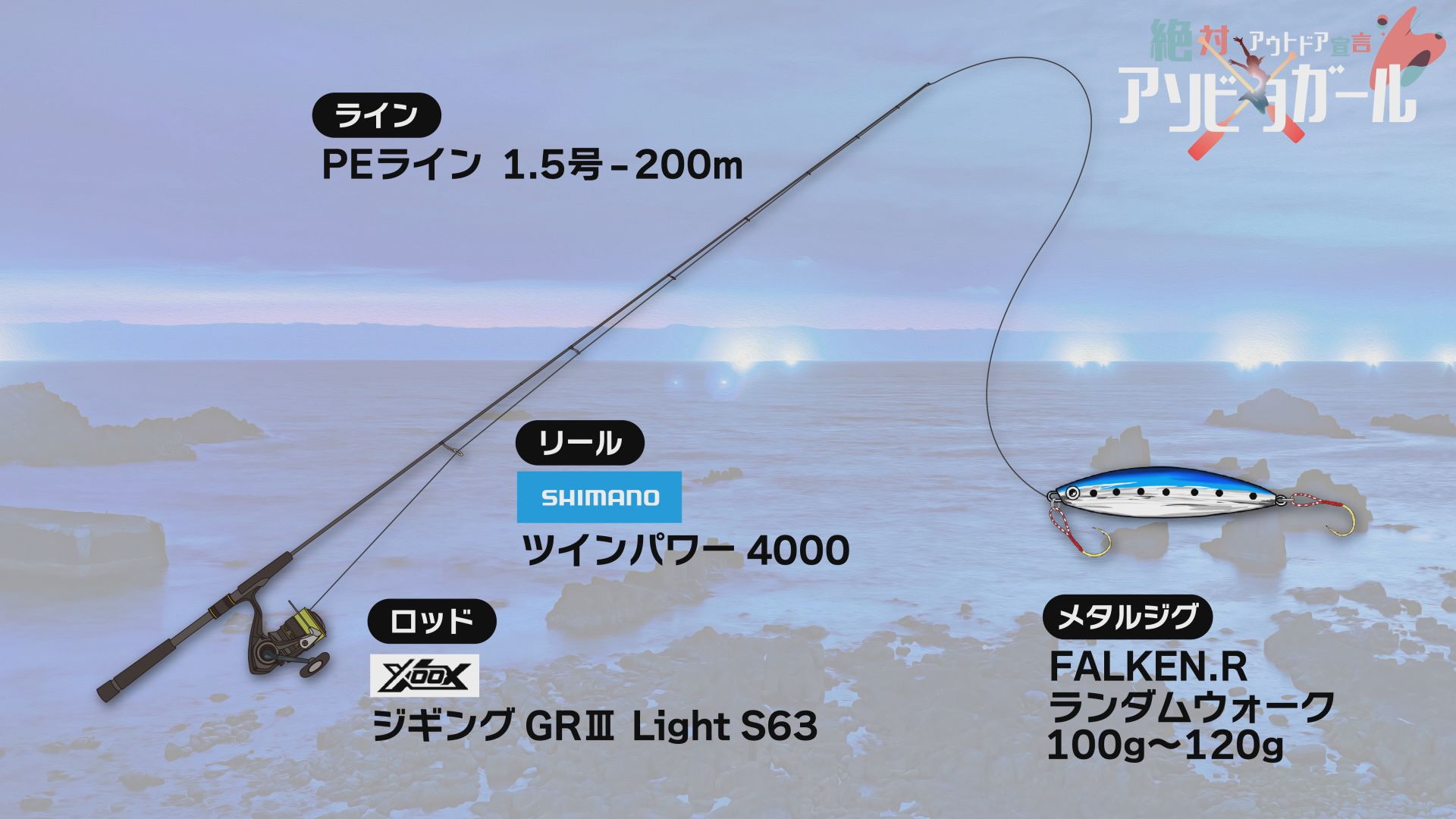 仕掛けは柔らかめのライトジギングロッドとスピニングリール4000番。