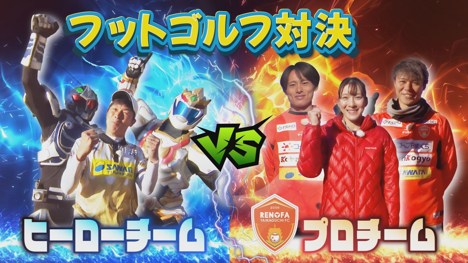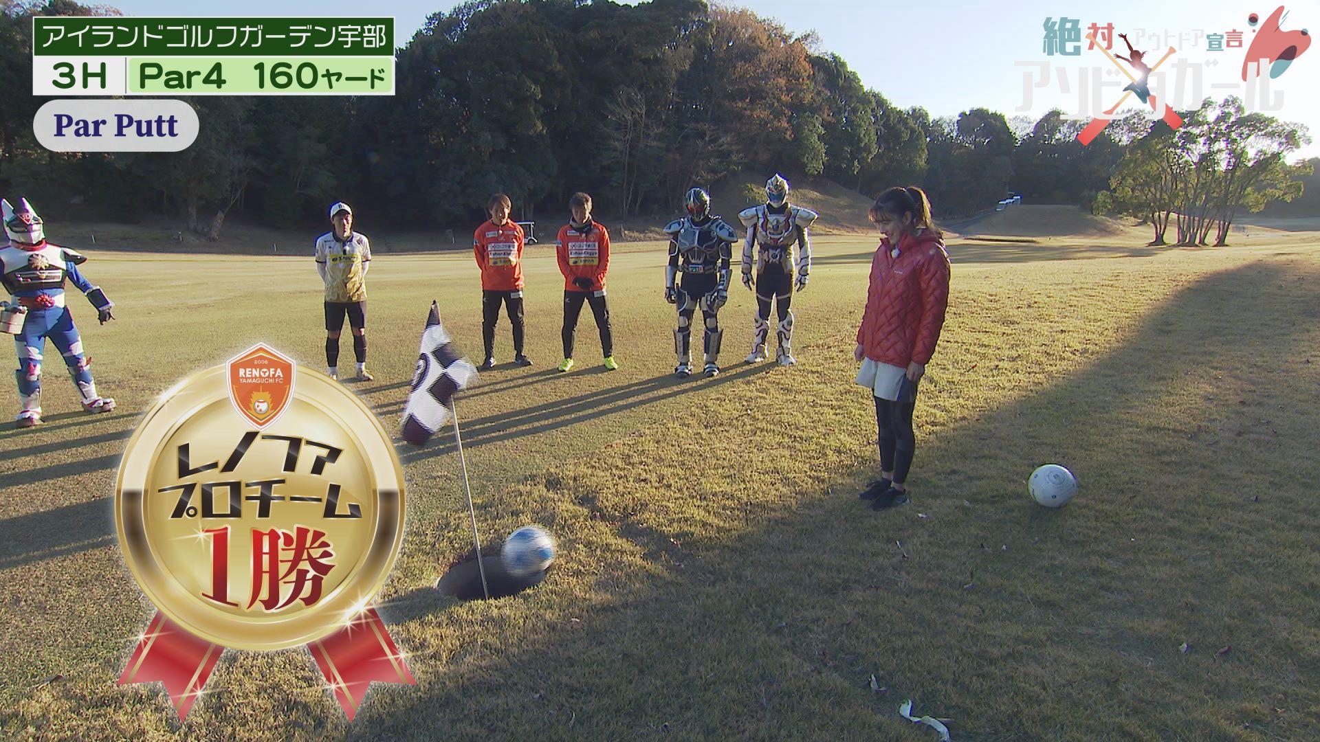 白熱のフットゴルフ対決!アソビタヒーローVS.レノファ山口withりさちゃんのプロチーム。