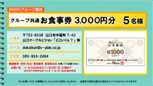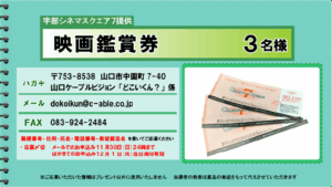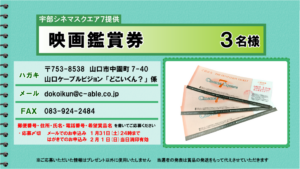 | 住所 | 〒753-8538 山口市中園町7-40 山口ケーブルビジョン株式会社 「どこいくん?」プレゼント係 宛て |