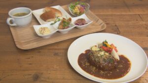 ハンバーグはふわっとしつつ、肉感も残した食感が特徴で食べ応えバツグン!
