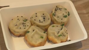 弱火でじっくり30分、カリカリの狐色に焼きあがった小籠包には肉汁がたっぷりつまっています。